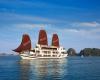12h10: Arrive to Halong bay, check into the rooms on Cristina Diamond Cruise.